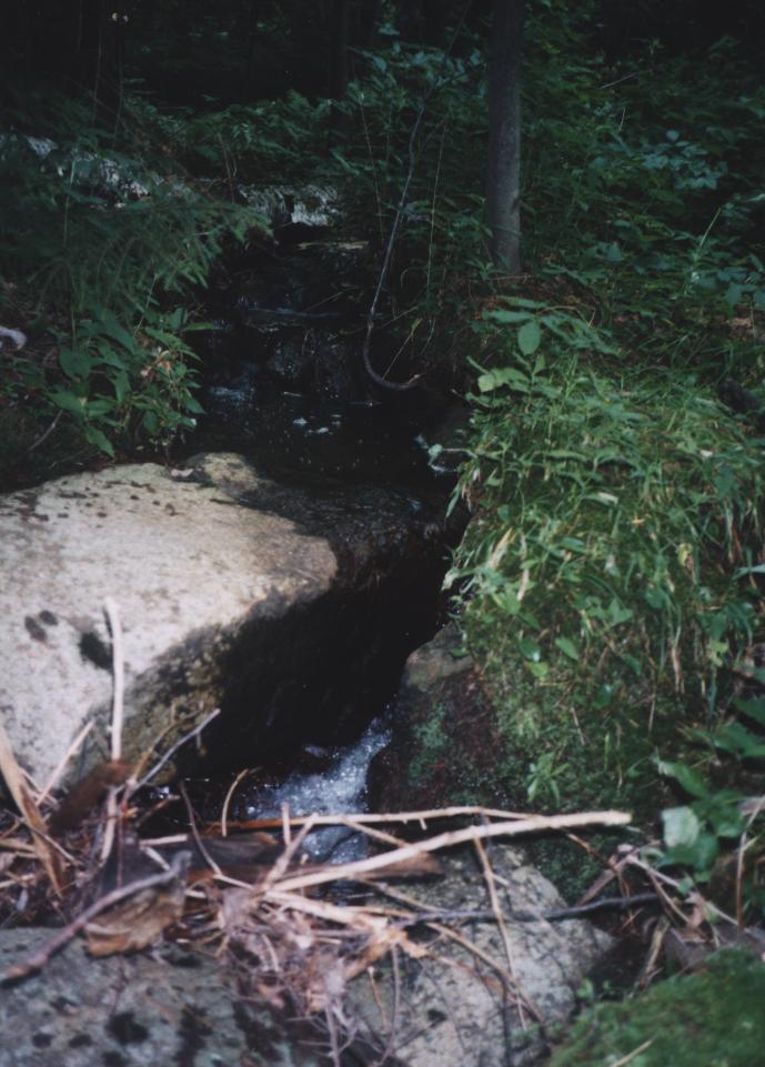 This is a cozy little spot. The stream runs from a narrow opening between the trees. You notice a rock shaped like a clue, and pick it up. Beatles are all you find underneath, however, so you replace it.