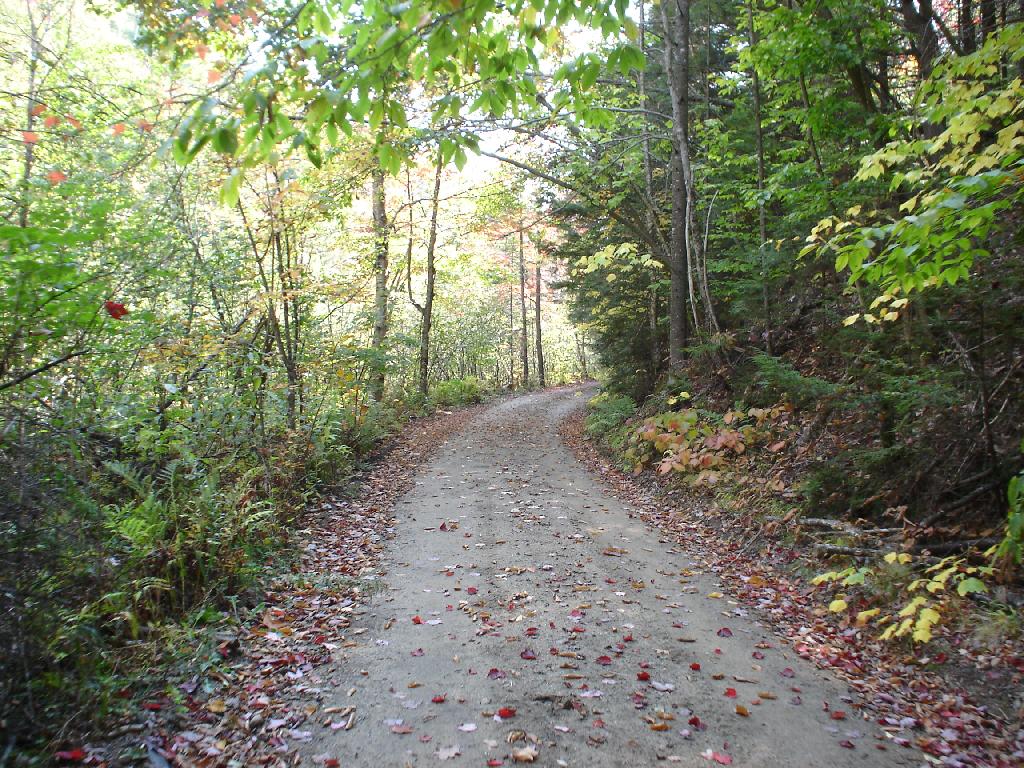 You are walking quite a distance on a rocky and uneven dirt road. Along most of its length, it is bounded on the south by steeply rising ground, and on the north by a gully leading down to a brook. Though the road winds between trees too dense to allow a view, you can tell that it leads toward the mountain to the east, and toward the junction to the west.